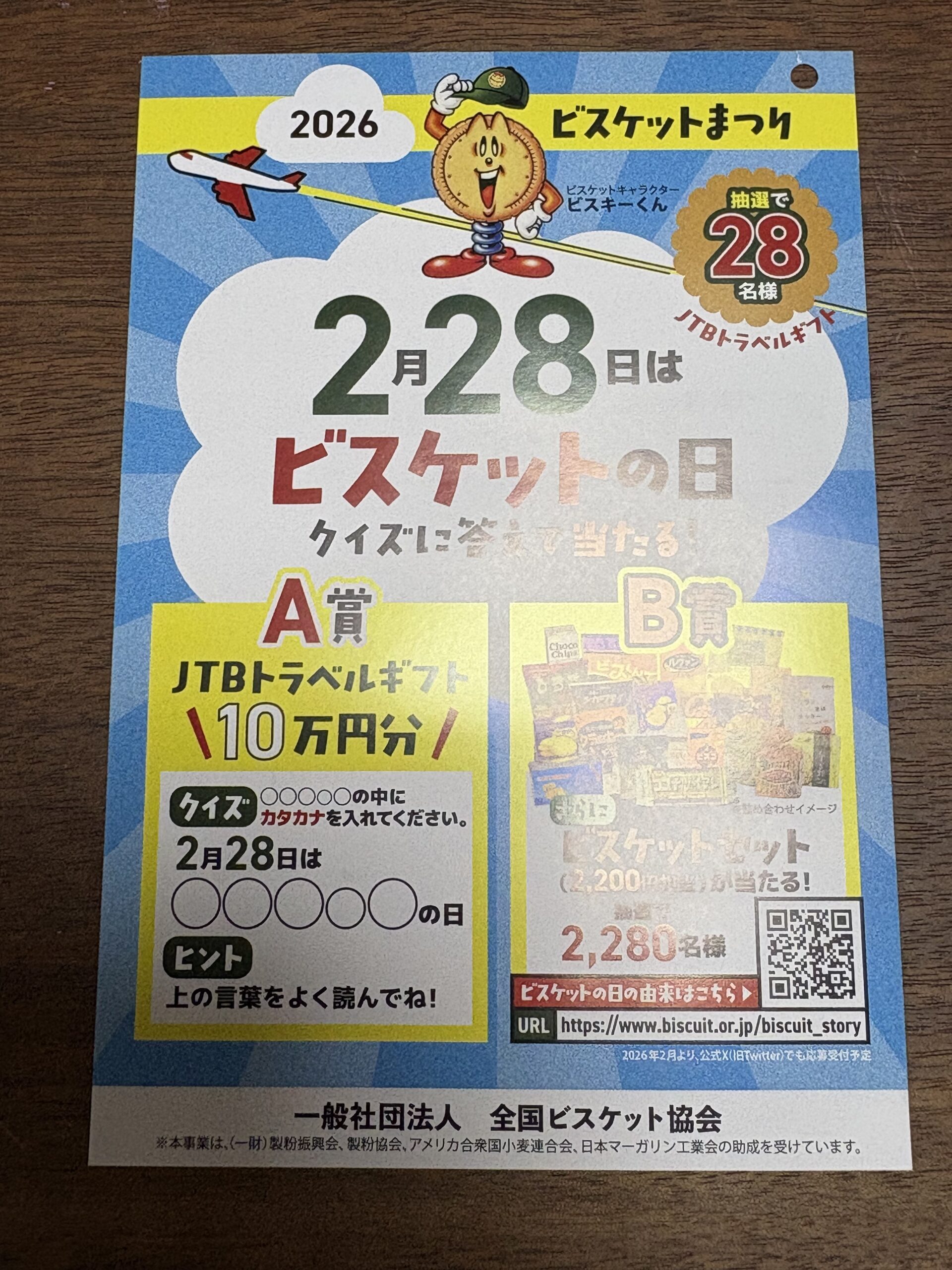 ビスケットの日キャンペーンはがき 懸賞 X Facebook はてブ LINE コピー 2025.11.30 懸賞妻 こんにちは。懸賞妻です。 ★ビスケットの日キャンペーン 応募締め切り2026年3月9日(当たったことはないですが今年も応募予定♫)