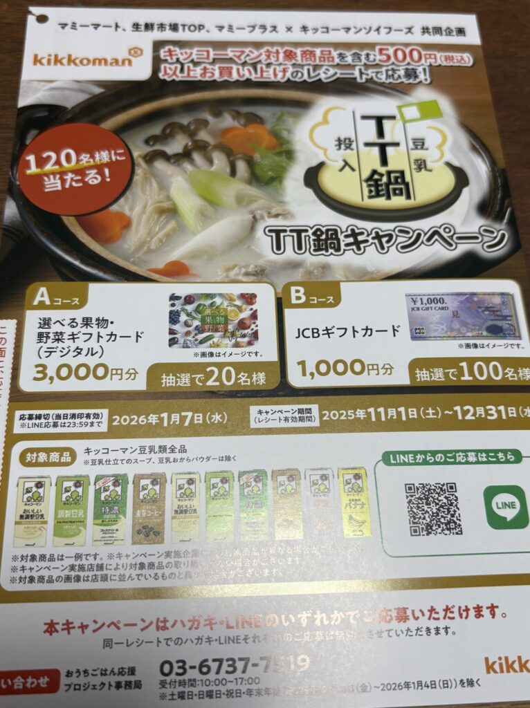 (キッコーマンの豆乳類全品対象です。豆乳の懸賞は一年を通してちょこちょこあると思いますが、豆乳当選したことないかも。。。今回リベンジしてみたいと思います(*^▽^*)ライン応募とはがきどっちで応募しようかな。。。こちらダイエーでもキャンペーンあるみたいですね。)