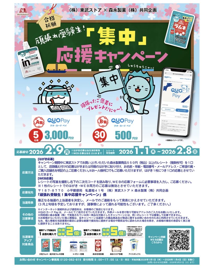★森永製菓「頑張れ受験生!集中応援キャンペーン」
