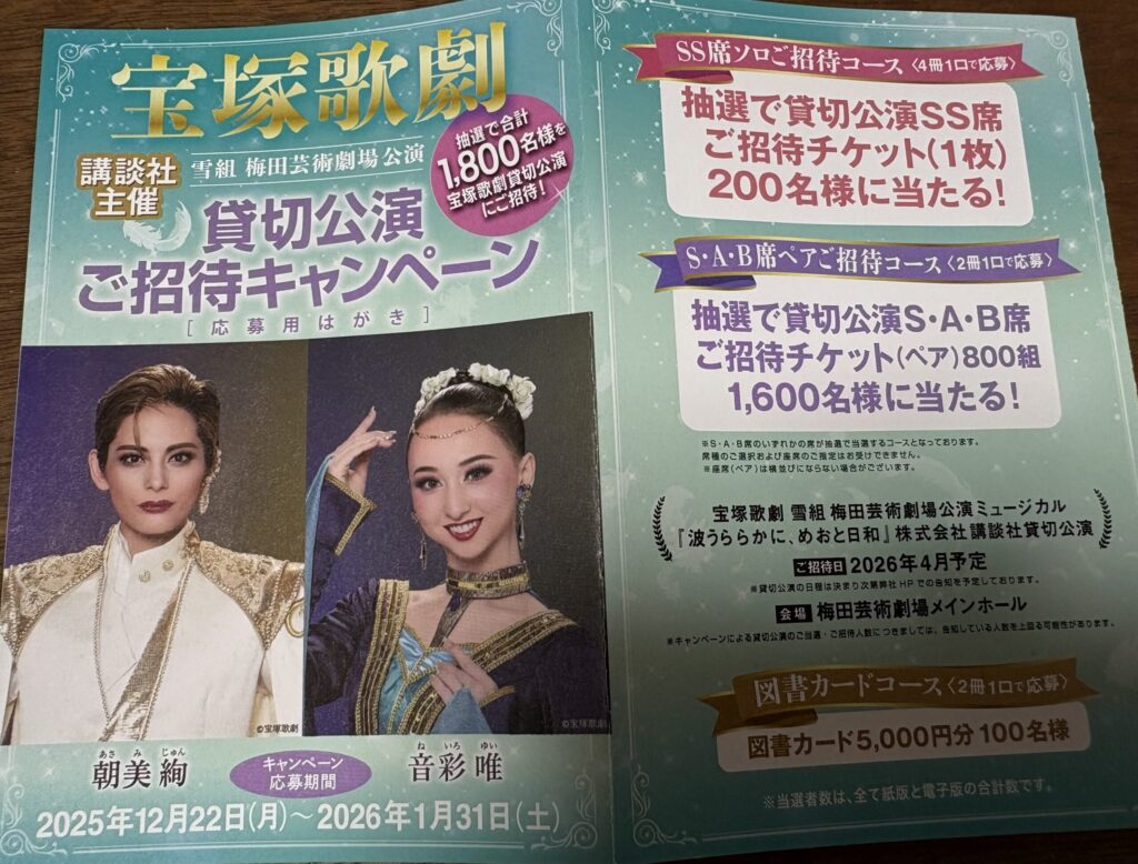 講談社のディズニーの懸賞は応募したことありますが、今回は宝塚(*^▽^*)