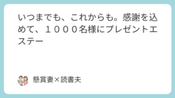 いつまでも、これからも。感謝を込めて、1000名様にプレゼントエステー